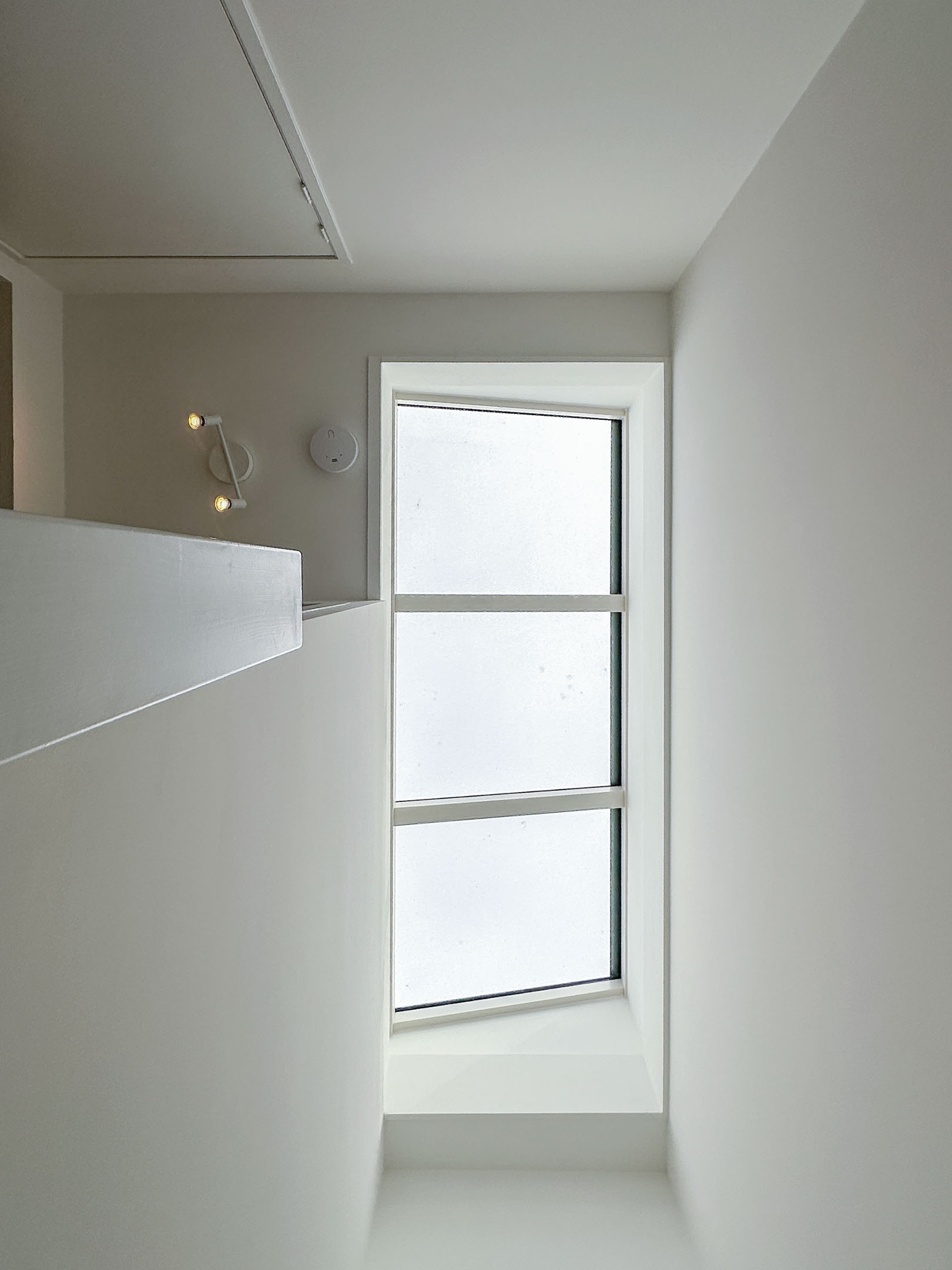 Landing with access to two bedrooms: a spacious master bedroom with closet space and connections for a washing machine, and a second, smaller room, ideal as a nursery, office, or study, with direct access to the terrace (approx. 4 m²).