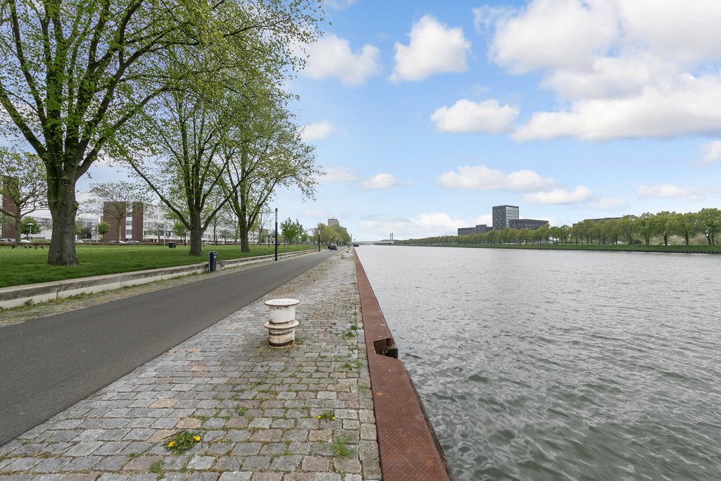 Entrance hall with meter cupboard, intercom and toilet with fountain. The living room has large windows with beautiful views of the canal. At the rear you overlook a flowerbed. There are two bedrooms with both overlooking the canal. The master bedroom has a double bed and closet. The second bedroom can be divided as you see fit. The kitchen is equipped with several built-in appliances. The bathroom has a walk-in shower, designer radiator and a sink. The entire apartment has laminate flooring and double glazing. In the basement is also a private storage room.