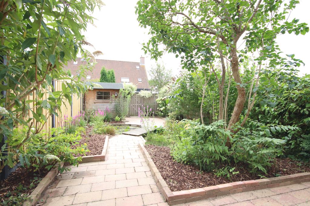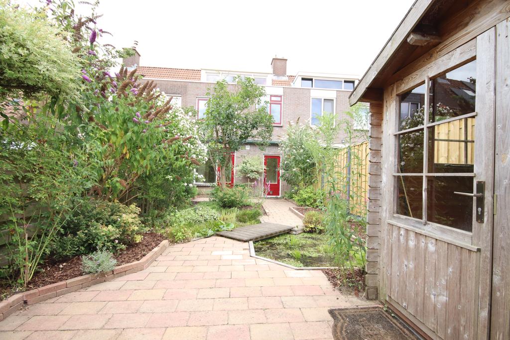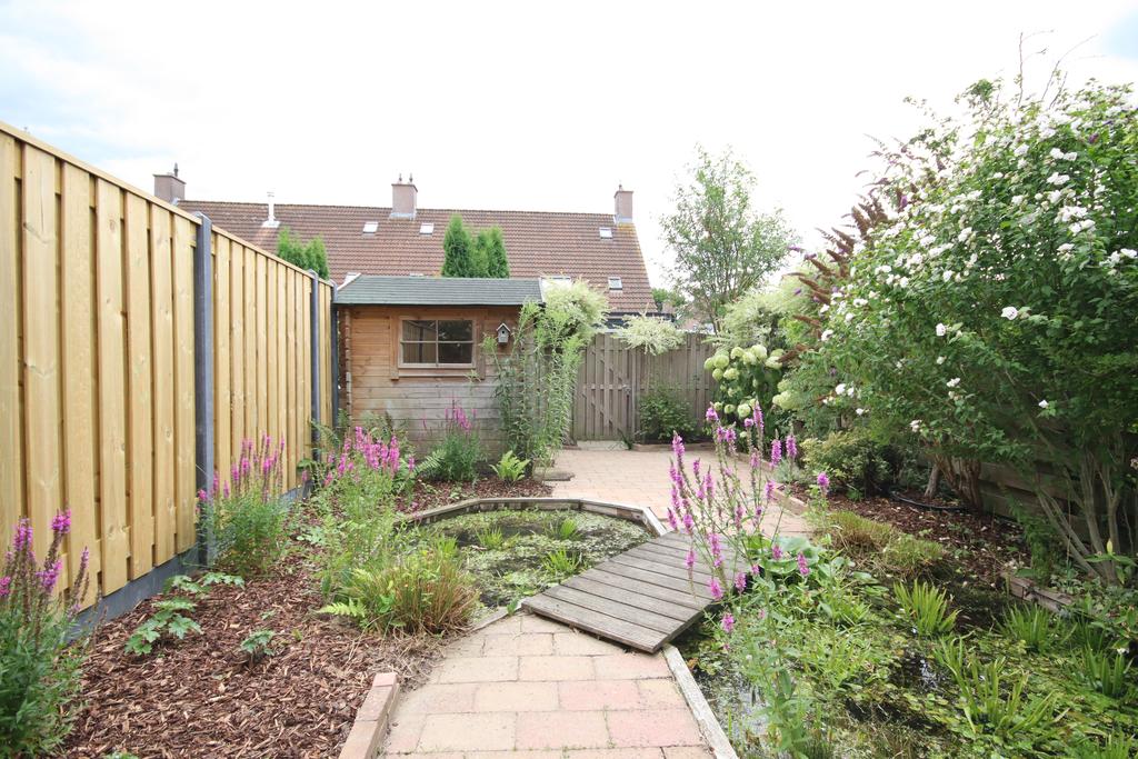 There is a spacious, well-kept back garden. Partly new fences, a pond and a little bridge make it a nice garden with lots of sun. There is also a wooden shed.