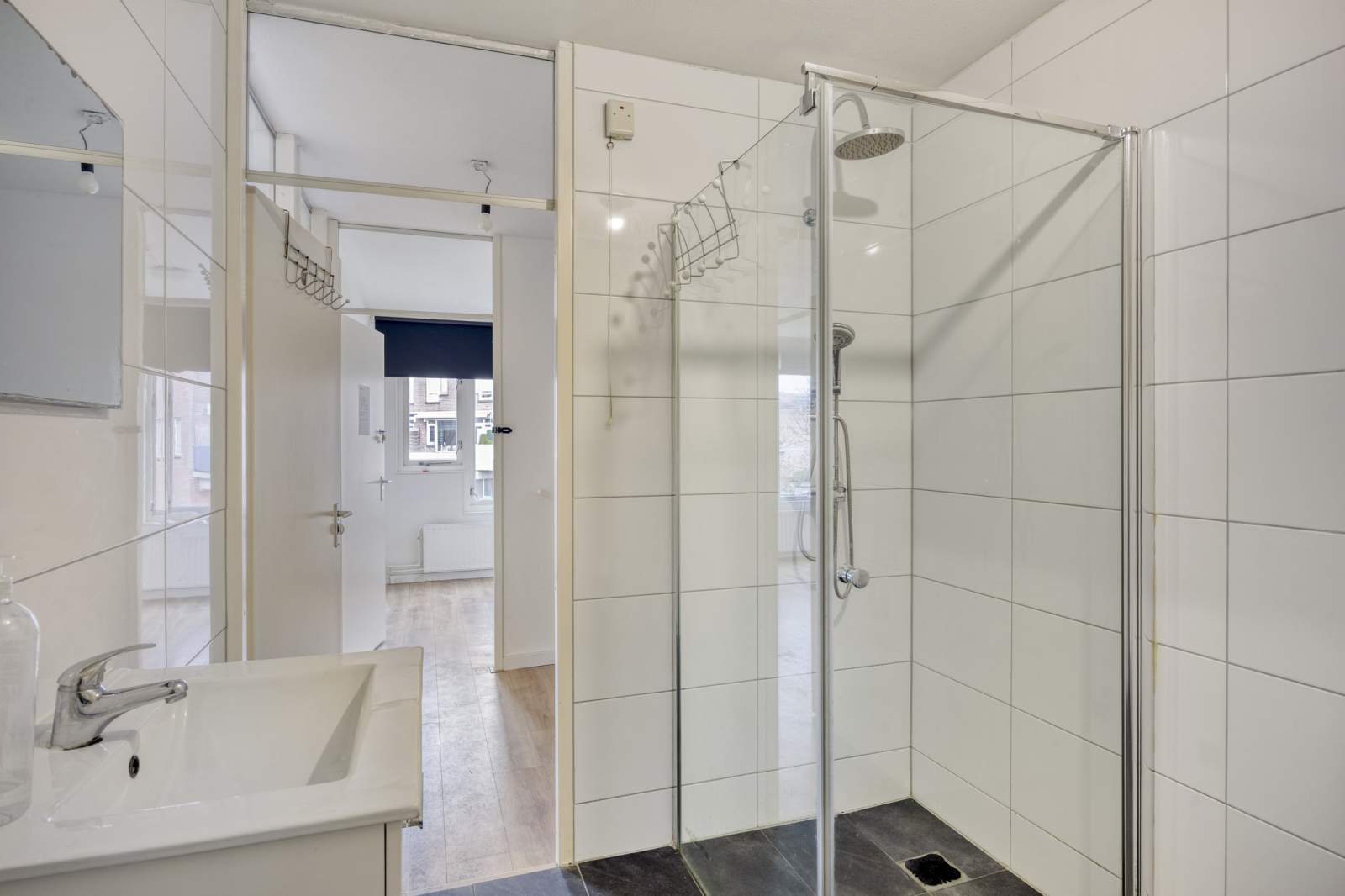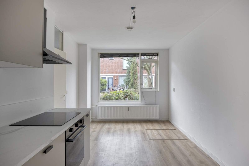 Via de gedeelde entree bereik je de studio op de begane grond. De studio beschikt over een eigen keuken, maar deelt de badkamer en het toilet met de overige bewoners.