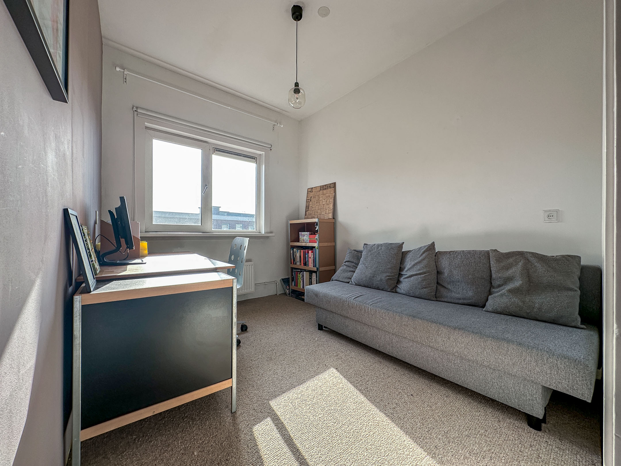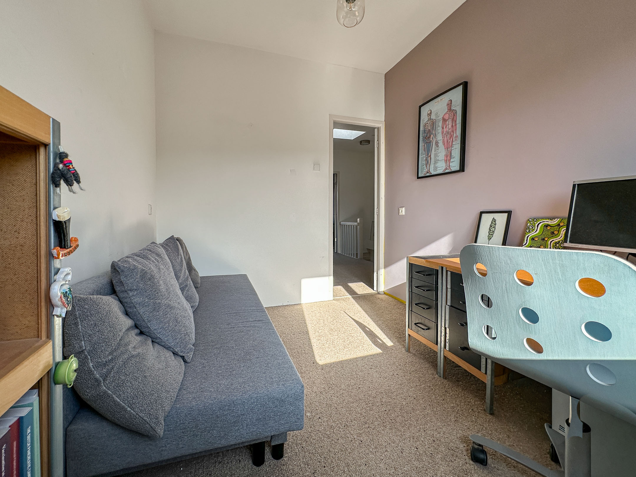 The second floor offers a pleasant and smart layout with two full-sized bedrooms. One room is stylishly furnished as a quiet home office, perfect for focused work. The other is a spacious and bright bedroom at the front of the house, with plenty of room for a large bed and extra closet space.